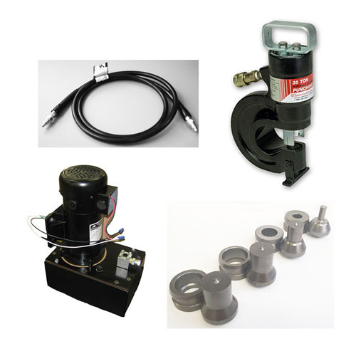 Our 35-Ton portable hydraulic punching unit weighs just 31 pounds, is easy to use and allows you to punch right on the job site.